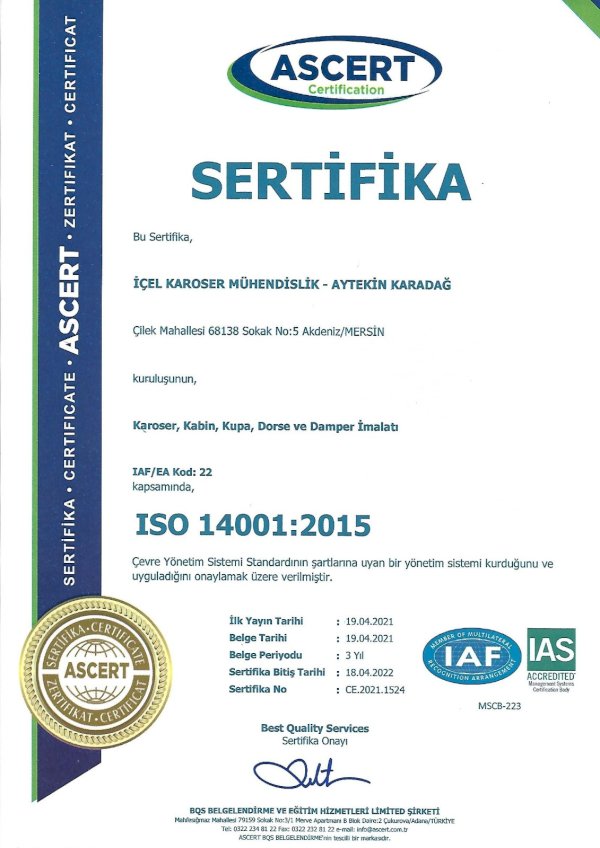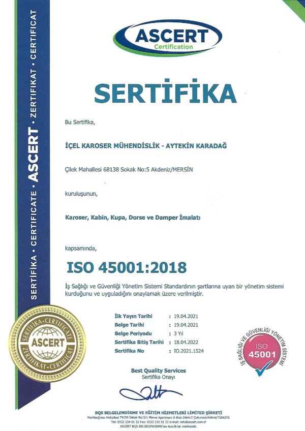 İçel Karoser İmalat sektöründe öncü ve kusursuz tescilli bir marka olarak yer almaktadır. Karoser İmalatı, Römork ve Çekme Karavan imalatı, Engelli Araçlarına Ait Tertibatlar, Çeki Kancası ve Projelendirme hizmeti vermekte olup ayrıca Türk Standartları Enstitüsü ve T.C. Çevre ve Şehircilik Bakanlığından yetkili, Tehlikeli Madde Taşıyan Araçların ADR Muayenesi, Araç Kontrol Merkezi (Üst Yapı Değişikliği, Montaj Uygunluk, Periyodik Ambulans İncelemesi, Karayolu Uygunluk...) ve Egzoz Emisyon Ölçüm İstasyonu olarak hizmet vermektedir.